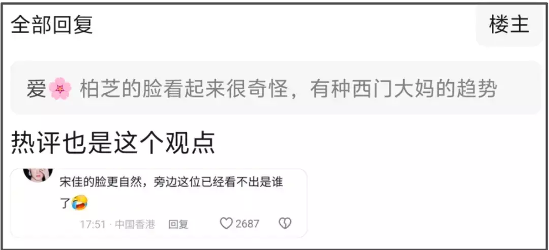 不过有网友觉得,外界倒也不必为张柏芝感到唏嘘,与谢霆锋离婚十几年,张柏芝早就开启了自己的新生活,就张柏芝的最新近况看,比起耽于旧日恩怨情仇,她更应该考虑的是赶紧换个牙。